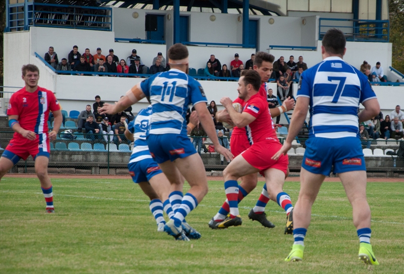 Prednost reprezentacije Grčke rasla je vrtoglavom brzinom. Pokušali su “Orlovi” nešto da promene. Imali su dobru priliku u 30. minutu, čak su i postigli esej koji je glavni sudije Robert Hiks poništio na asistenciju pomoćnika Denisa Černjajeva zbog toga što je pas Ilije Radana ka Rajku Trifunoviću bio nekih pola metra unapred. Nakon ovoga gosti ponovo preuzimaju inicijativu i do kraja poluvremena stižu do prednosti od 6-46.